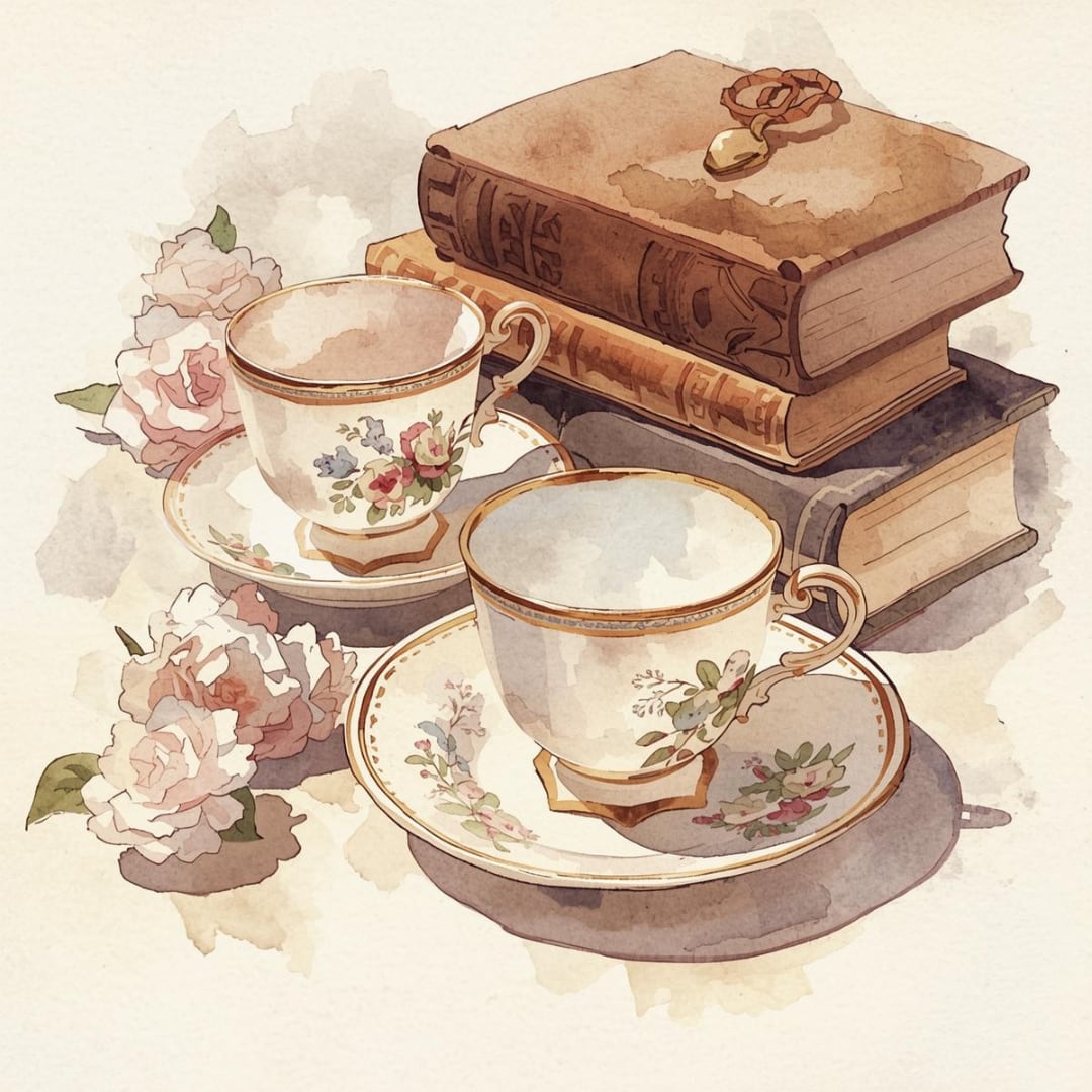 やさしい薄茶トーンで描かれた、水彩のアンティーク小物シリーズです。
