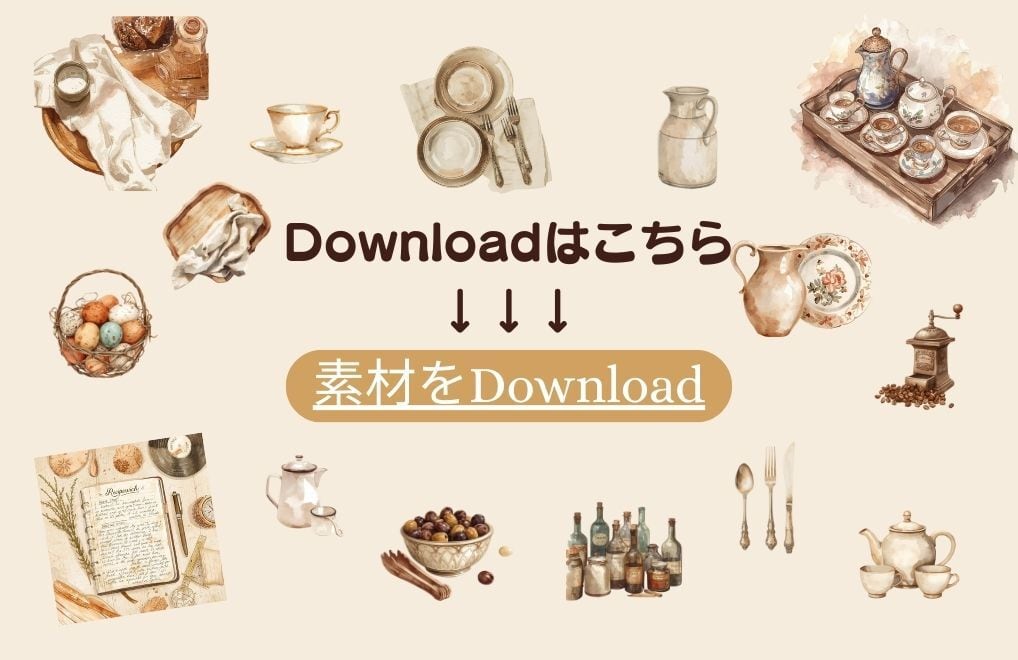 アンティークキッチン小物 水彩クリップアート15種類